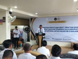 Penyerahan bantuan tersebut berlangsung di aula Lapas Cianjur dan diterima langsung oleh Kalapas Cianjur, Eris Ramdhani. Hadir mendampingi, Anggota Komisi IV DPRD Cianjur Irfan Aulia dan Kepala Dinas Kesehatan Kabupaten Cianjur.