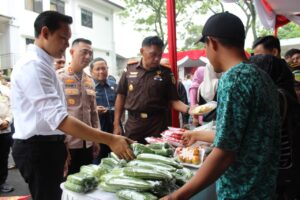 Acara yang juga dihadiri Bupati Cianjur dr. Mohammad Wahyu Ferdian, Kapolres Cianjur AKBP Rohman Yongki Dilatha, dan jajaran Forkopimda ini menampilkan beragam produk pangan dan hasil kerajinan tangan. Para pejabat daerah tampak berkeliling, meninjau satu per satu lapak yang tersusun rapi.