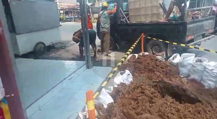 “Pembeli jadi malas mampir kalau di depannya ada lubang besar dan tanah becek. Mereka bebas saja menggali tanpa memikirkan kami yang cari makan di sini. Kalau tidak ditegur keras, tanahnya dibiarkan berantakan begitu saja,” keluh seorang pemilik toko di lokasi, Selasa 14/4/2026.